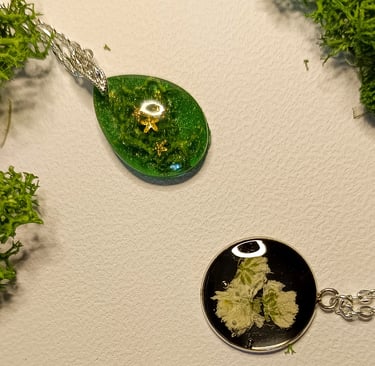 Découvrez nos bijoux inspirés de la nature, faits avec amour en résine, révélant une magie féerique à travers des teintes variées et colorées pour embellir votre quotidien.